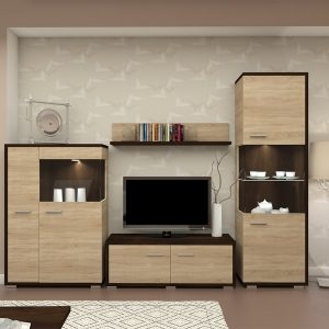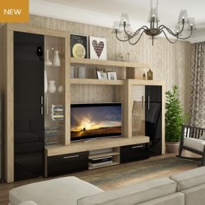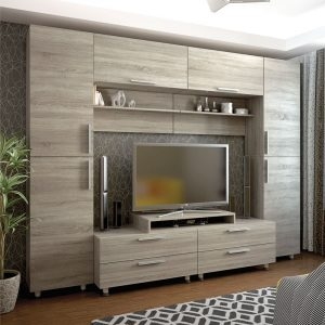 - Підставка. Гарнітур виглядає незавершеним, якщо в ньому відсутня спеціальна тумба під телевізор або систему домашнього кінотеатру.